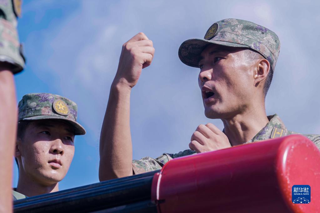駐香港部隊某團防空營營長王海旭在防空陣地上指揮戰(zhàn)斗裝備進入預(yù)定區(qū)域(2020年8月13日攝)。新華社發(fā)(田越洋 攝)