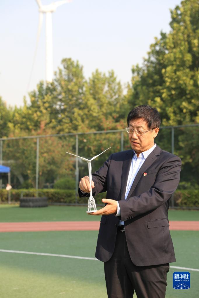 武鋼在位于北京經(jīng)濟(jì)技術(shù)開發(fā)區(qū)的金風(fēng)科技智慧園區(qū)內(nèi)展示風(fēng)機(jī)模型(2022年9月20日攝)。新華社發(fā)