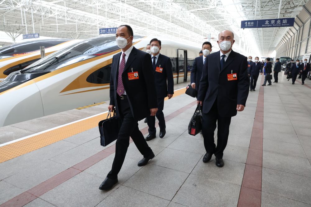 10月13日,來自內(nèi)蒙古自治區(qū)的黨的二十大代表乘高鐵抵達(dá)北京北站。這是當(dāng)日首個抵京的京外代表團(tuán)。新華社記者 張玉薇 攝