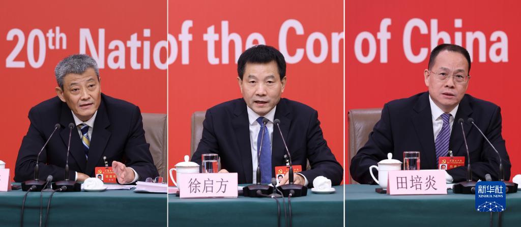 10月17日,中國共產(chǎn)黨第二十次全國代表大會新聞中心舉行記者招待會,請中央紀(jì)委副書記、國家監(jiān)委副主任肖培,中央組織部副部長徐啟方,中央政策研究室副主任田培炎介紹堅(jiān)定不移全面從嚴(yán)治黨,深入推進(jìn)新時(shí)代黨的建設(shè)新的偉大工程有關(guān)情況,并回答記者提問(拼版照片)。
