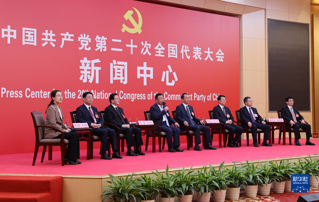 10月19日,中國共產(chǎn)黨第二十次全國代表大會新聞中心舉行集體采訪。山東、河南、湖北、湖南、廣東、廣西、海南代表團(tuán)新聞發(fā)言人出席,介紹代表團(tuán)學(xué)習(xí)討論二十大報告情況,并回答記者提問。