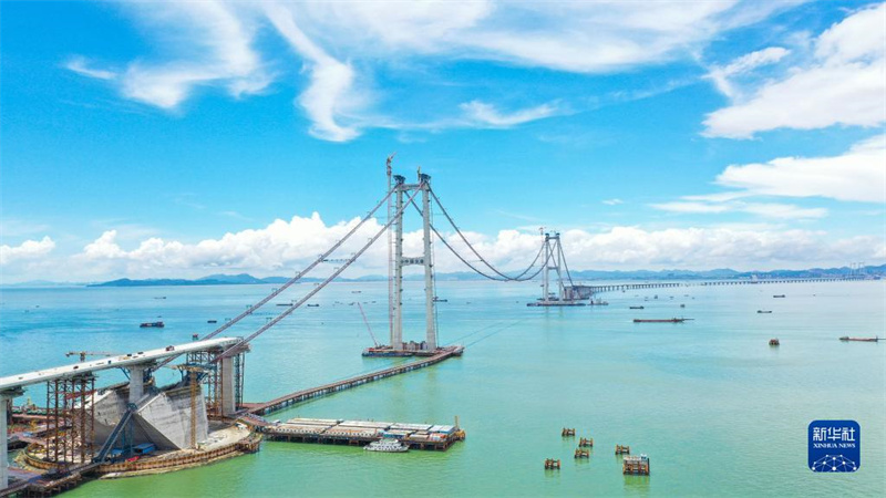 這是深中通道關(guān)鍵控制性工程伶仃洋大橋的建設(shè)現(xiàn)場(10月16日攝,無人機照片)。新華社發(fā)(張政 攝)