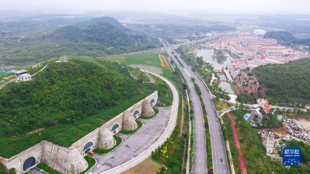 貴安新區(qū)華為云數(shù)據(jù)中心(以道路為界右側)和騰訊貴安七星數(shù)據(jù)中心(左側)(2022年5月24日攝,無人機照片)。新華社記者 歐東衢 攝