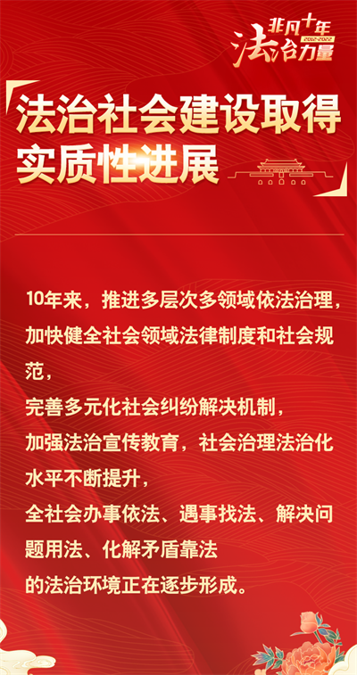 法治網精心策劃制作十期海報,帶您一起領略非凡十年的法治力量!今天為您奉上第七期“法治社會建設取得實質性進展”。